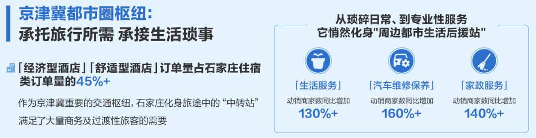 另外,石家庄服务于周边区域的生活服务网络也在加速拓展。其中,生活服务、汽车维修保养、家政服务成为城市商家增速最快的三大类目——2025年均增长了130%+。显示出石家庄强大的区域服务承载力。