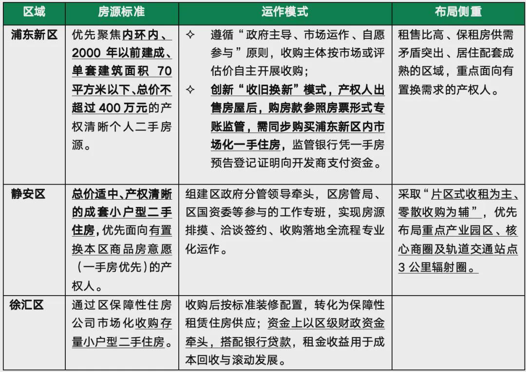 徐汇区则由区房管局、区财政局、区国资委、区城投集团等部门组成工作专班,由区保障房公司作为具体的收购单位,统筹推进试点工作。