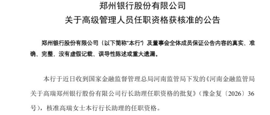 2025年以来,郑州银行高管团队出现密集变动,短短3个月内共有6名高管相继离职,高瑞便是该行高管层大变动后获批任职的第二位高管。近日,郑州银行发布公告称,国家金融监督管理总局河南监管局已核准高瑞该行行长助理的任职资格。