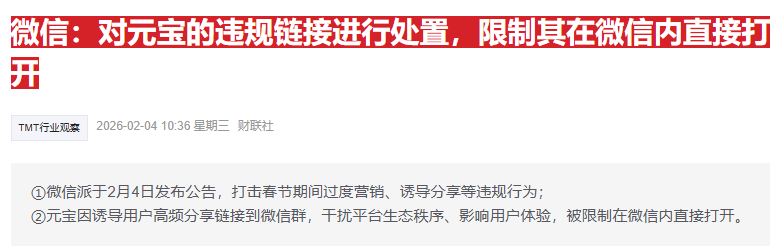 另外,微信派发布关于第三方诱导分享行为的打击公告,对以春节为主题集中爆发的过度营销、诱导分享等违规行为进行打击。