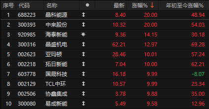 受该消息刺激,光伏板块午盘走强,晶科能源、中来股份、拓日新能、国晟科技、tcl中环等多股涨停。