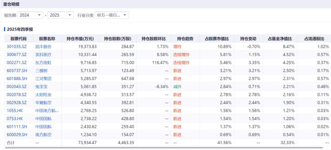 需要提到的是,尽管航空股是这个季度新进成为前十大重仓股,其实多数在半年报就已经出现,只不过仓位比较低。