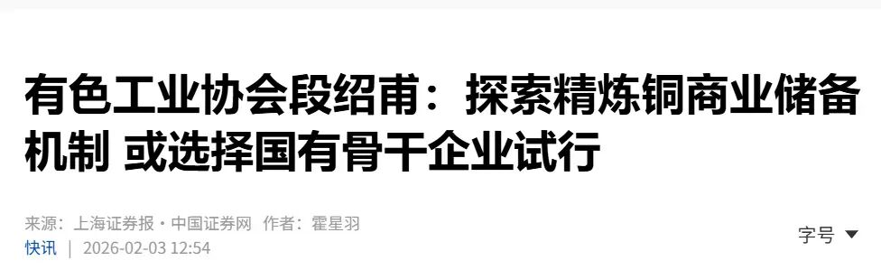 比如,我们提到要完善铜资源储备体系。一方面扩大国家战略储备规模,另一方面探索商业储备机制,通过财政贴息让国有骨干企业试行商业储备。甚至,还研究将铜精矿纳入储备范围。