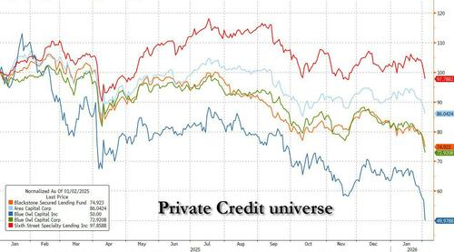 导致这一崩溃的原因主要集中在人工智能技术的颠覆性威胁上。高盛客户指出,Anthropic 推出的新代理功能以及部分AI相关公司每股收益(EPS)的下滑(如 Publicis 和 IT),加剧了市场恐慌。投资者担忧AI可能是软件公司的终结者,这种恐慌情绪导致被视为软件即服务(SaaS)主要贷款方的BDC遭遇重创,市场仿佛任何风吹草动都能让BDC“患上重感冒”。