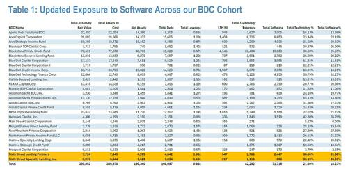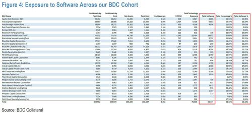 BDC是私募信贷市场重要组成部分的商业发展公司(Business Development Company,简称BDC),专门为中小型企业(通常是私有企业)提供资金,手里持有大量软件公司的债务(约占其投资组合的 16%)。而随着软件行业面临前所未有的抛售潮,BDC正面临严峻的资产减值风险。