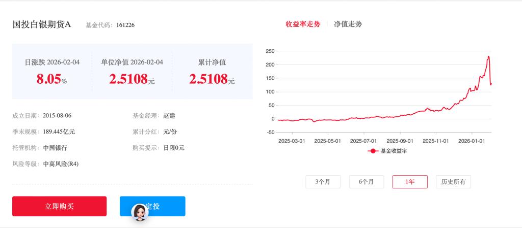 为保护投资者利益,2月4日晚间,国投白银LOF再次发布公告称,该基金将于2026年2月5日开市起至当日10:30停牌,自2026年2月5日10:30复牌。
