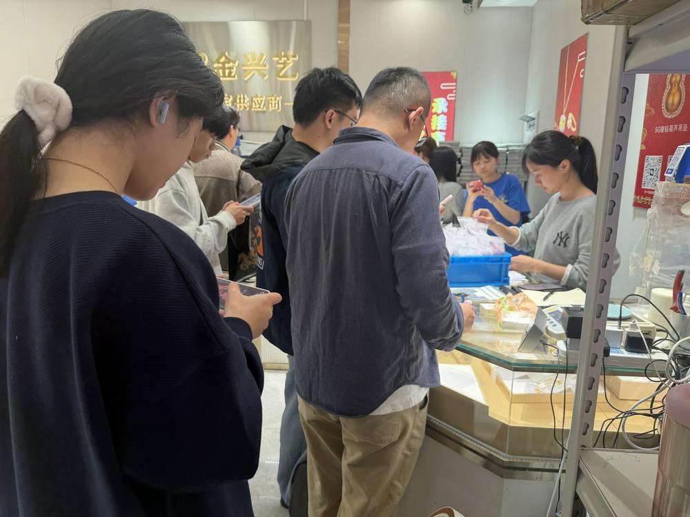 眼下,黄金投资热度高加上短期的价格下跌确实引起投资者购金意愿增强。记者在水贝市场观察到,即便是工作日,多数柜台都围着三两顾客,甚至出现“排队发货”的场景。