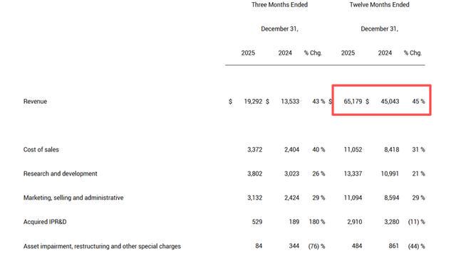当地时间2月4日,美国礼来公司(LLY.US)发布2025年第四季度财报以及2025年全年财报。公司第四季度营收192.9亿美元,同比增长43%,高于分析师预期;全年总营收达651.79亿美元,按固定汇率CER计算同比增长44%,净利润206.4亿美元,同比增长95%。
