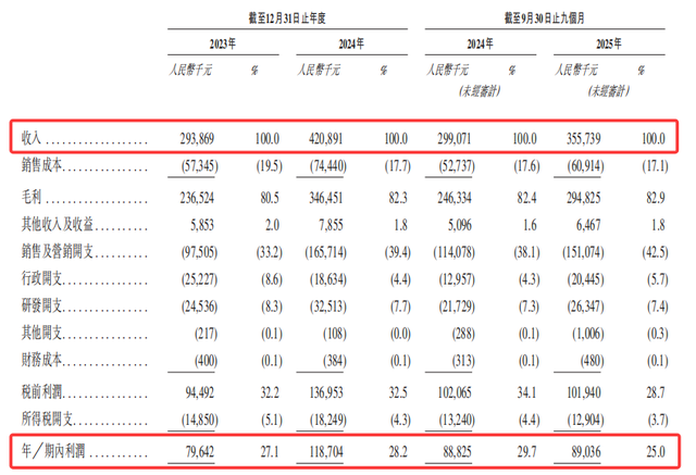 然而,净利润情况却不容乐观。2023年到2025年前三季度,净利润分别为7964.2万元、1.19亿元、8903.6万元。其中,2025年前三季度净利润同比仅微增0.24%,近乎停滞,与营收增速形成鲜明反差。