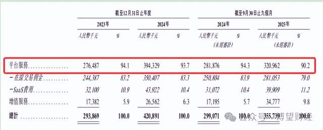 从收入占比来看,平台服务是绝对主力。2023 年到2025 年前三季度,其收入占总营收的 90.2%,增值服务收入占比仅 9.8%,且长期在个位数徘徊。进一步拆解,在线交易佣金是营收的核心支柱,占比长期超 80%,2025 年前三季度仍达 79.0%。