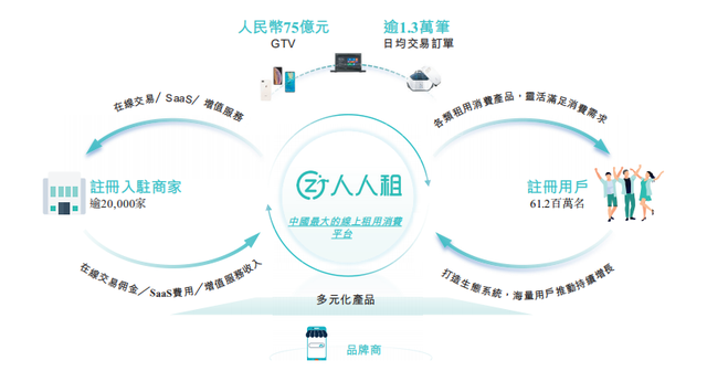 招股书显示,按照2024年的GTV计,人人租是中国最大的在线租用消费服务平台,公司以人人租为在线服务平台,实现轻资产运营。截至2025年9月30日,平台已汇聚超过20000家注册入驻商家,提供手机及配件、计算机及平板、摄影航拍、健康 理疗等产品品类。截至2025年9月30日止九个月,付费用户达170万名。