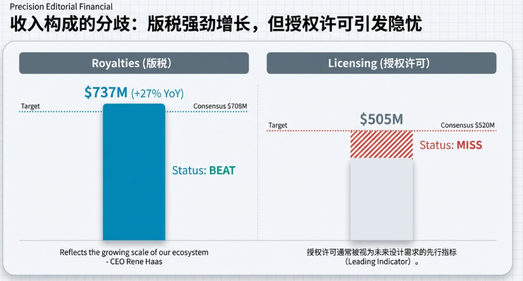 然而,“许可及其他”收入为5.05亿美元,低于市场预期的5.20亿美元。由于许可收入往往与客户未来产品规划相关,盘后交易中市场对这一缺口更为敏感。