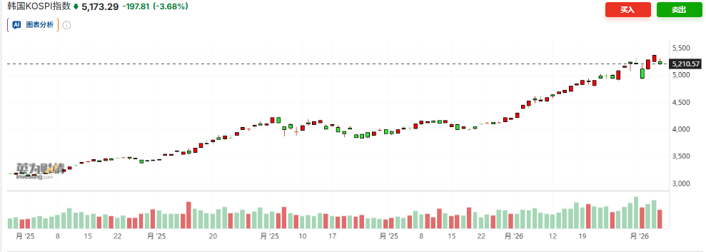 韩国市场承压最重,Kospi指数跌3.68%。三星电子和SK海力士分别下跌4.14%和4%。