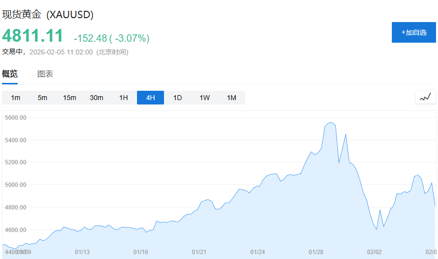 现货白银日内跌超16%,跌破74美元关口。现货黄金盘中跌破4800美元,日内跌超3%