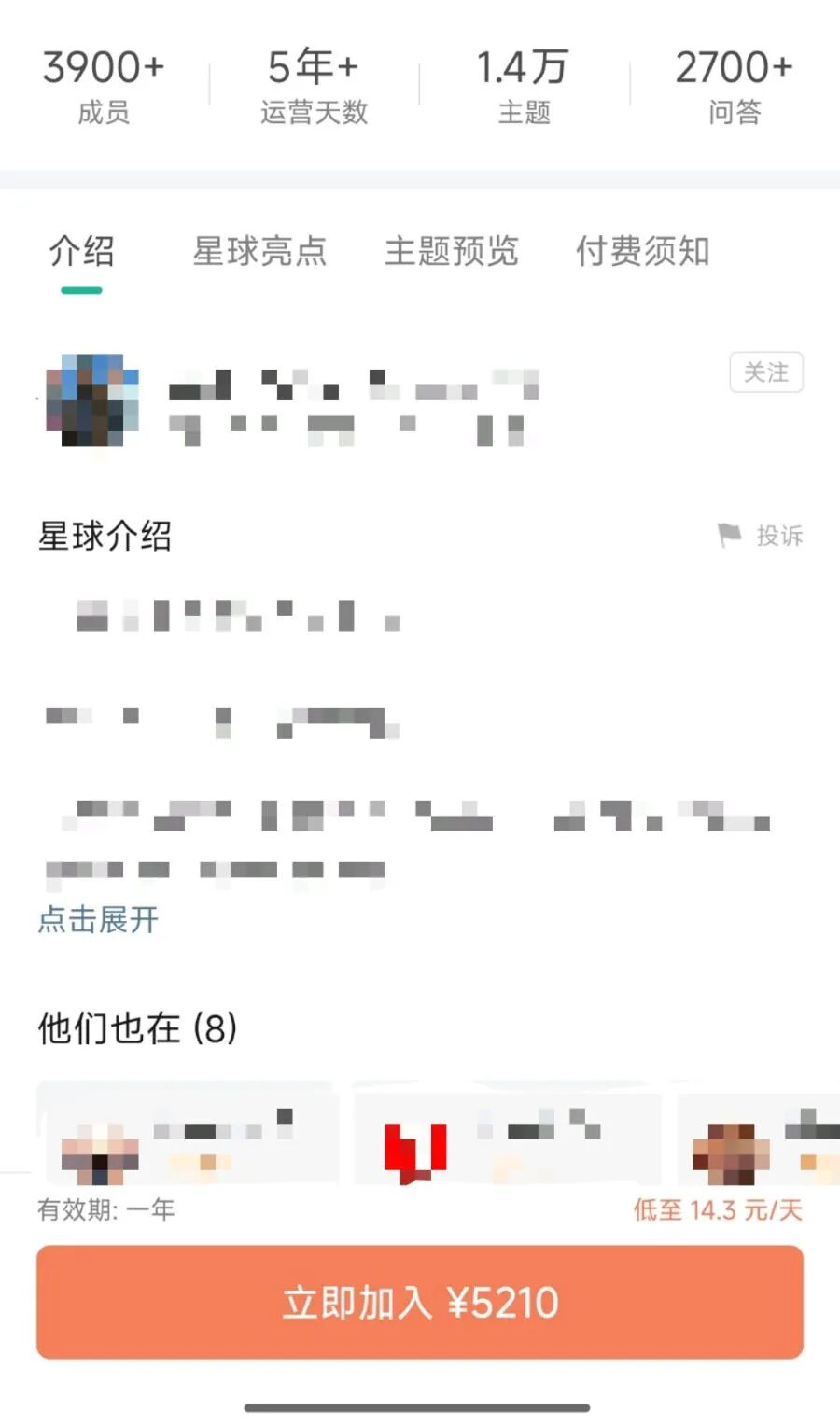 在知识星球等平台,有财经“大V”靠着会员年费,甚至可以实现千万的年收入。如下图“大V”会员年费5210元,按3900个成员计算,该星球年费毛收入已超2000万。
