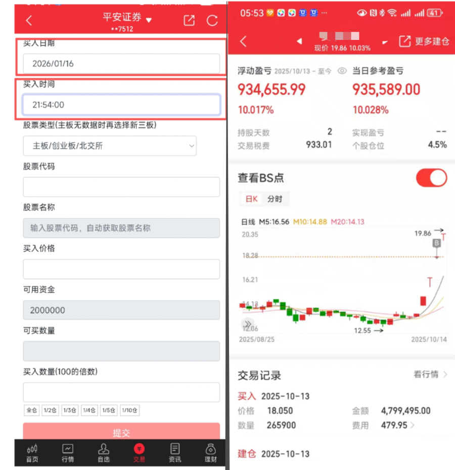 记者购买了一个模拟器账号登陆后发现,该模拟器的交易页面与同花顺高度雷同,但存在大量可自由编辑的功能,包括开户券商、起始资金等。用户甚至可以直接设置买入时间、买入价格。