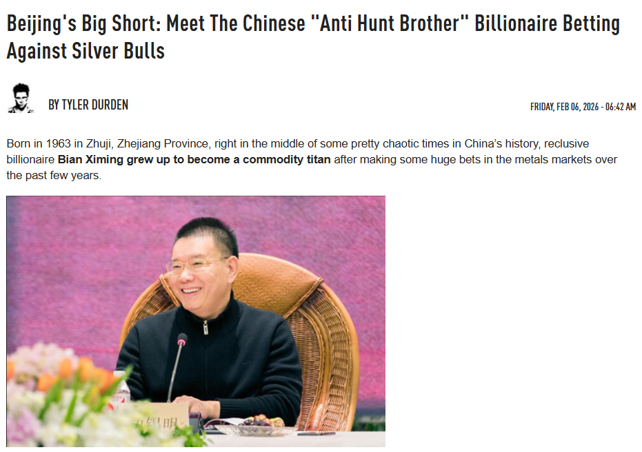 他就是中财期货实控人边锡明。据FT和彭博测算,中财期货席位在近期白银价格崩盘前建立了大规模空头头寸。这笔逆势布局的收益已超过5亿美元(约合36亿元人民币)。
