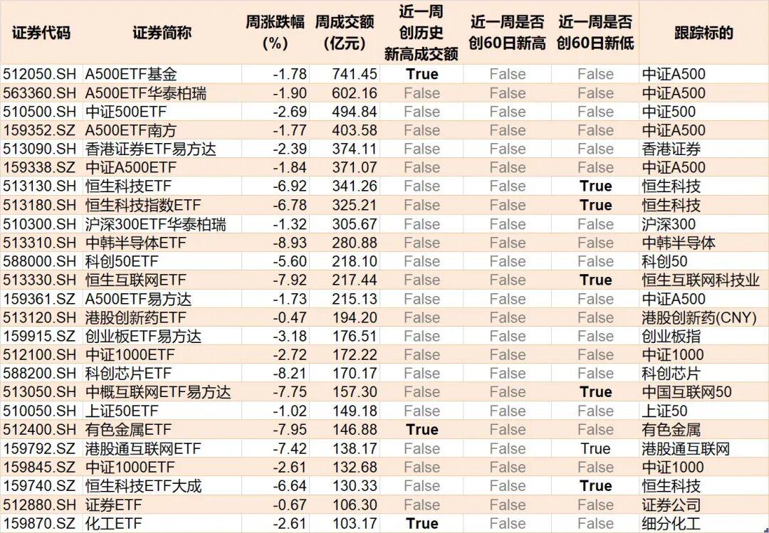 其中,A500ETF基金周成交额超700亿元,创历史新高。