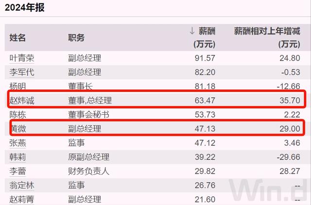 作为公司核心高层,赵炜诚2024年薪酬为63.5万元,黄微薪酬为47万元,原董事长杨明薪酬为81万元,最高是副总经理叶青荣,超过91万元。