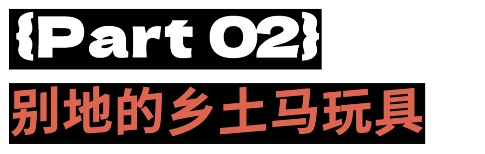 除了上述两种玩具之外,还有山西的布马、陕西的面花马等等,他们按材质来说主要可以分为6类:泥土与陶瓷、竹木、布制、纸质和包括面团、草药在内的各种其它素材,由他们制成乡土玩具在中国延续千年,民众就地取材,在节庆之时制作,承载对未来的美好想象。