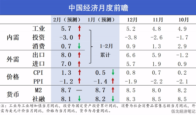 内需方面,“开门红”存在预期差异。汽车、家电等“以旧换新”销售明显趋缓,服务业PMI创历史同期最低。从航班、酒店预订看,春节消费延续“以价换量”。基数效应引致地产同比读数优化,并非趋势转换。基建实物工作量偏弱,但鉴于债券发行前置因素节后或有修复。出口仍驱动生产走强。