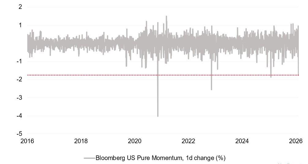 当“有钱花不出去”的风险开始被计价,金融市场的反应是剧烈的。近期,美股经历了过去十年来第四大“动量股”单日抛售。
