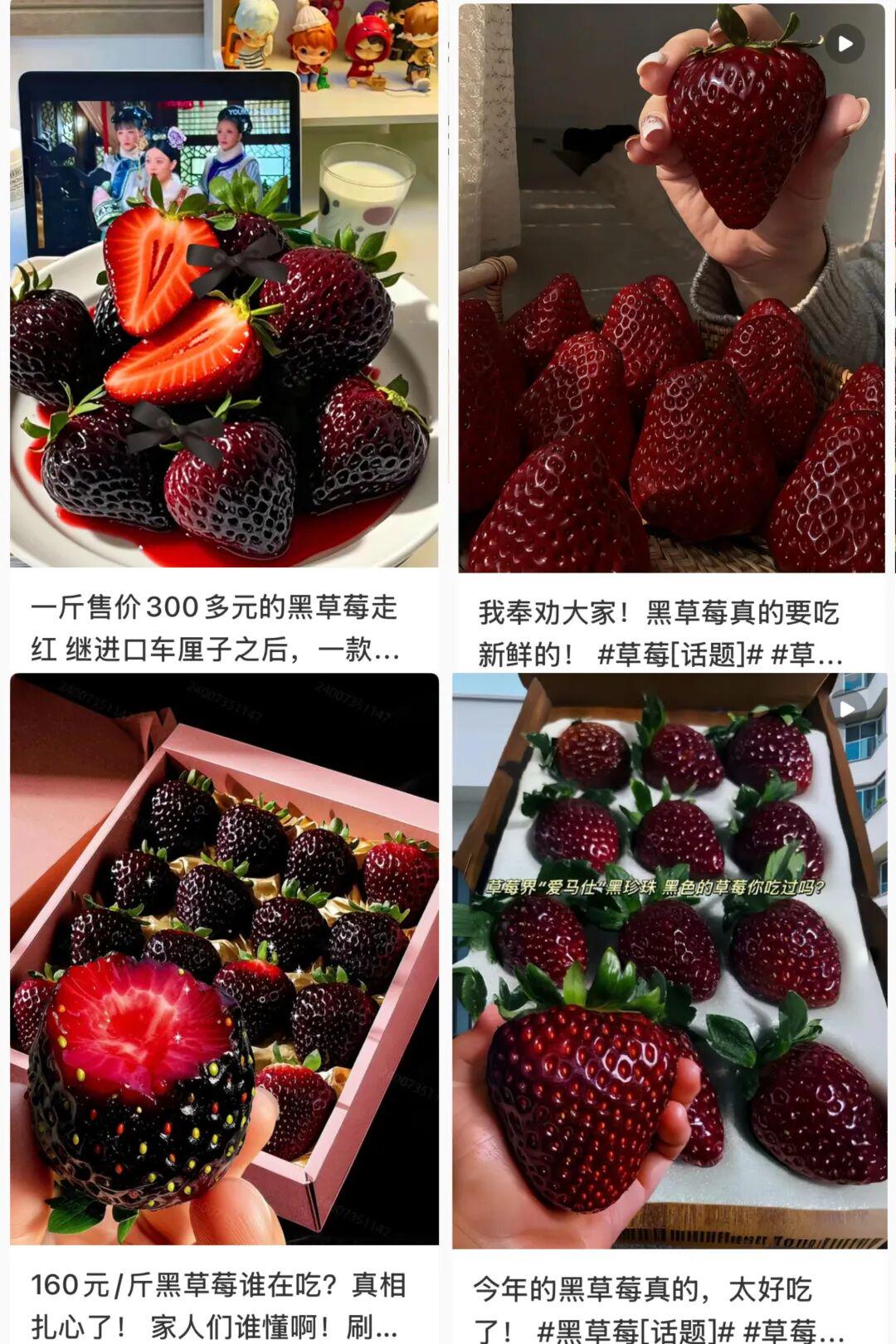 能一登场就“血洗”热搜,离不开黑草莓特别的外形,和“价不惊人死不休”的特性。
