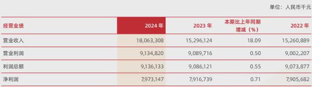 从2022年至2024年看,北京农商银行营收持续增长,尤其是2024年营收同比增幅18.09%至180.63亿元,较上年同比增幅0.23%可谓十分显著;归母净利同比增幅0.71%至79.73亿元,较上年同比增幅0.14%则不太明显。