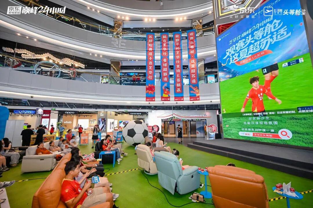 去年8月,芝华仕借势苏超赛事的火爆热度,在 “818 全民升舱日” 期间打造 “球迷专属观赛场景”,将头等舱沙发的舒适属性与观赛需求深度结合,还联动江苏 13 城吉祥物打造线下互动场景,让球迷在家就能获得沉浸式观赛体验,成功将赛事流量转化为品牌消费力。