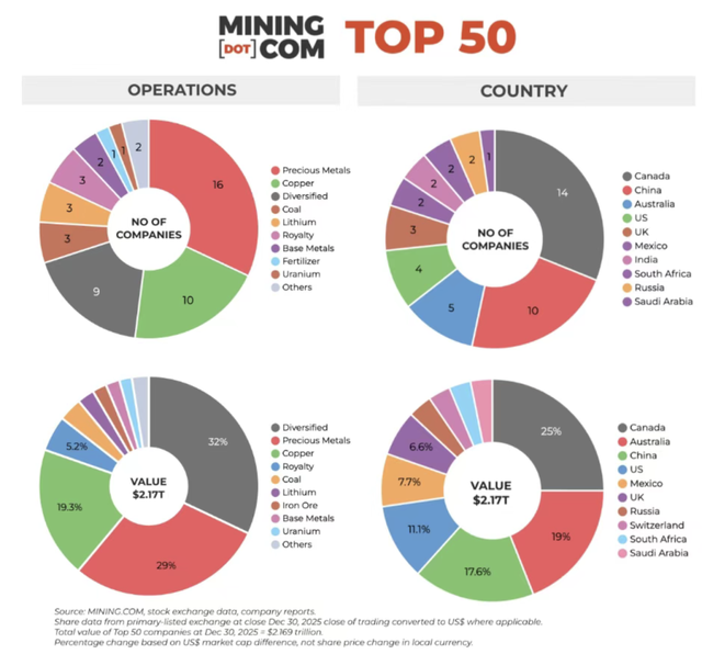 ▲全球市值TOP50矿商分布 来源:MINING.COM