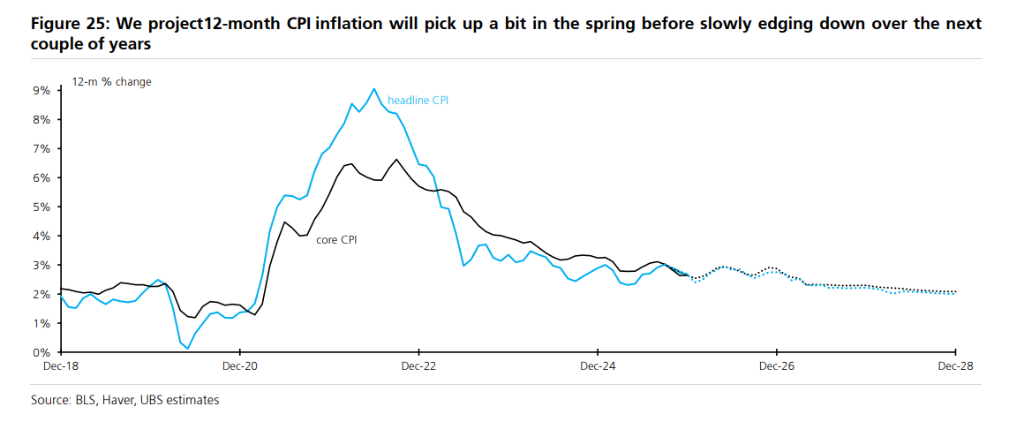 瑞银虽然预测短期数据偏高,但展望未来,认为通胀将在春季见顶,随后在未来几年缓慢下行。该机构预计1月整体CPI同比增速将降至2.41%,尽管核心CPI同比增速可能小幅降至2.57%,但这仍是自2021年3月以来的最低水平。