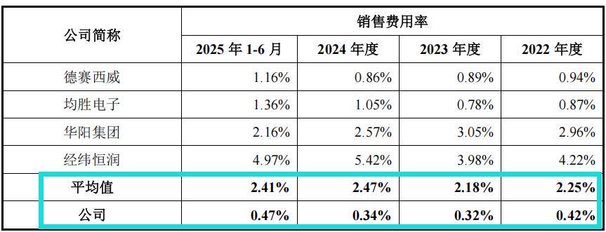 报告期内,公司销售费用率低于同行业可比上市公司平均水平,主要原因为:与同行业可比上市公司相比,公司业务及人员规模相对较小,销售部门组织架构较为精简所致。