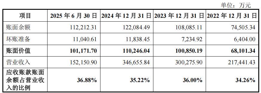 随着埃泰克收入规模快速增长,公司应收账款金额随之提升。报告期各期末,公司应收账款余额分别为7.451亿元、10.809亿元、12.208亿元和11.221亿元,占公司营业收入的比例分别为34.26%、36.00%、35.22%和36.88%。公司应收账款主要来源于国内知名整车厂商和汽车零部件供应商,应收账款无法收回的风险相对较小。各期末账面余额占营业收入的比例为34.26%、36.00%、35.22%和36.88%。