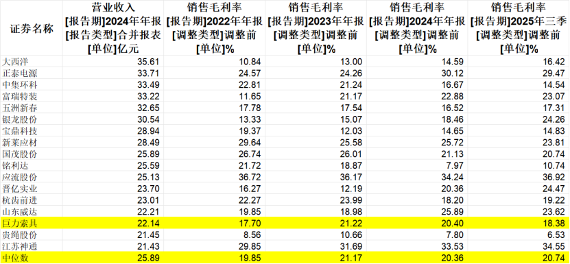 2022—2024年及2025年前三季度,巨力索具的毛利率分别为17.7%、21.22%、20.4%和18.38%,与行业中位数基本处在同一水平线上。