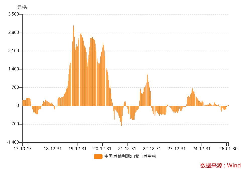 此外,随着2026年猪价有所回暖,自繁自养模式下的养殖利润转正,行业就很难出现被动出清。
