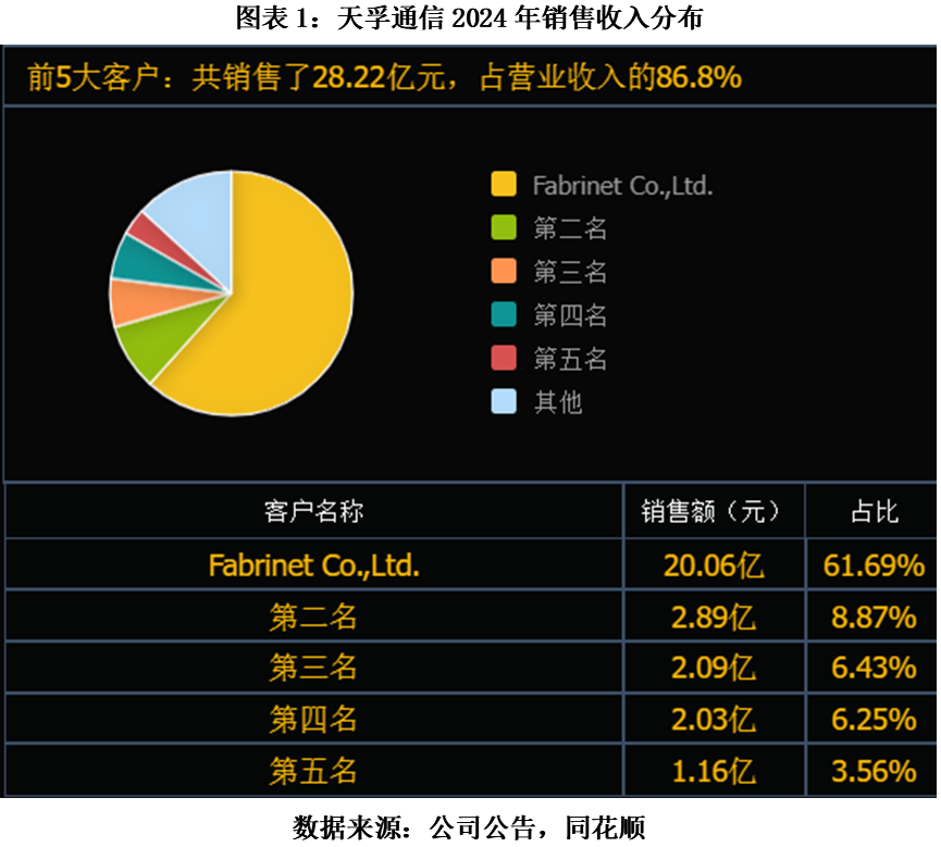 首先,是极高的客户集中度风险。该公司长期高度依赖单一大客户Fabrinet,2024年,Fabrinet销售额占比高达61.69%,这使得公司业绩与其命运深度捆绑。