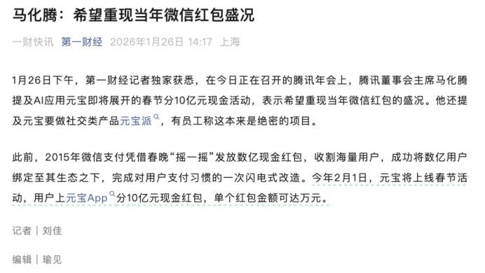 腾讯马化腾直言“希望重现当年微信红包盛况”,但这次的目标已不再是支付,而是让用户把AI助手装进手机,打开来用,并且最好别卸载。