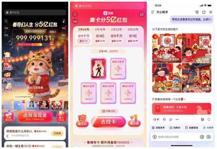 这第四阶段应该算是“AI入口卡位期”。与以往不同,今年的红包活动全部与AI产品深度绑定。