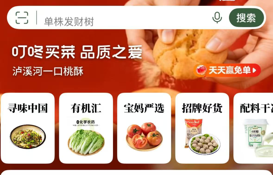 在叮咚买菜的首页,“寻味中国”“宝妈严选”“有机汇”等等,都是针对核心用户群体而专门开发的系列。