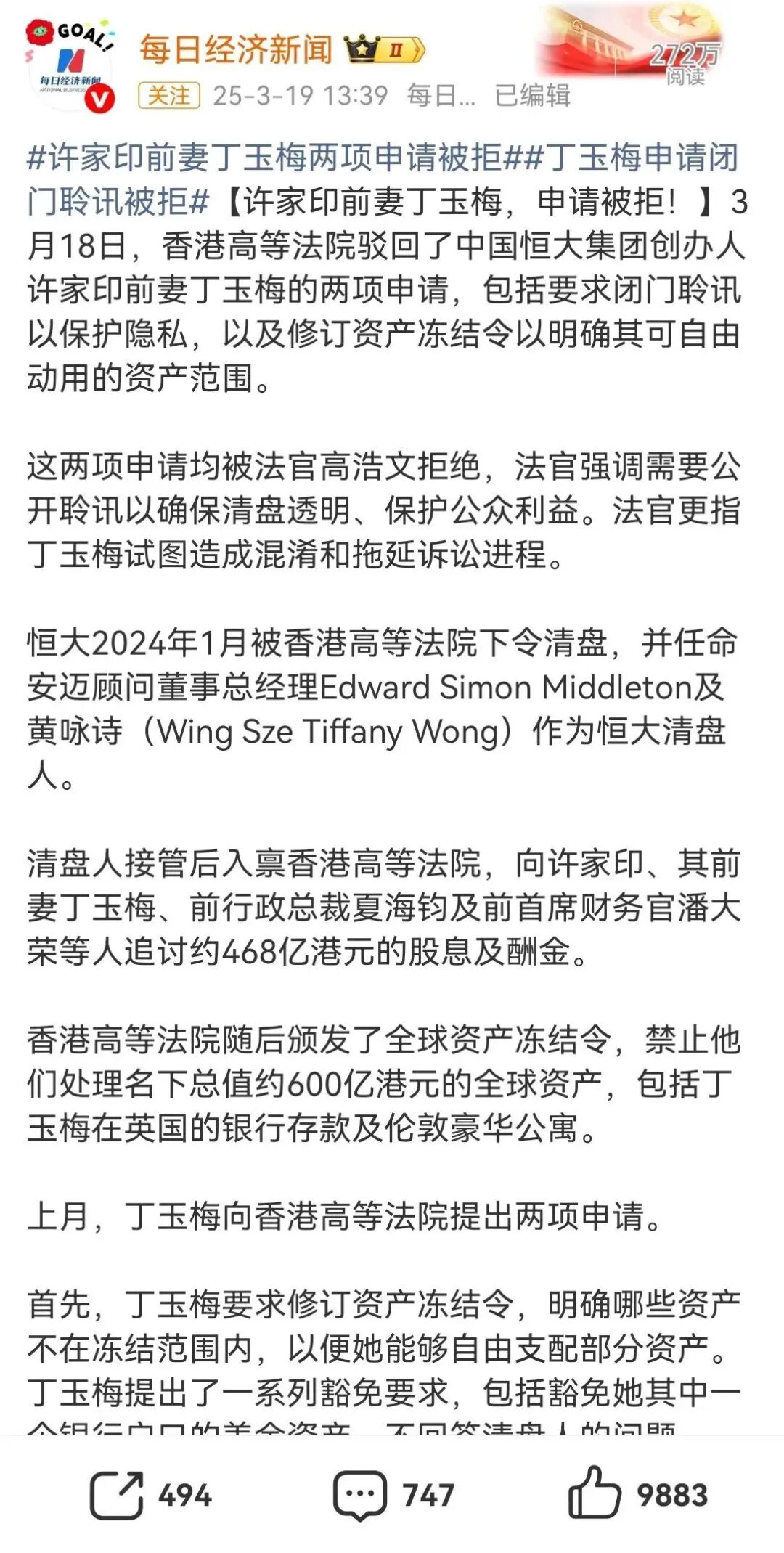 为了保住家族财产,丁玉梅仍不死心,提出一系列(申请豁免资产、闭门聆讯等)无理要求,均被法院驳回。