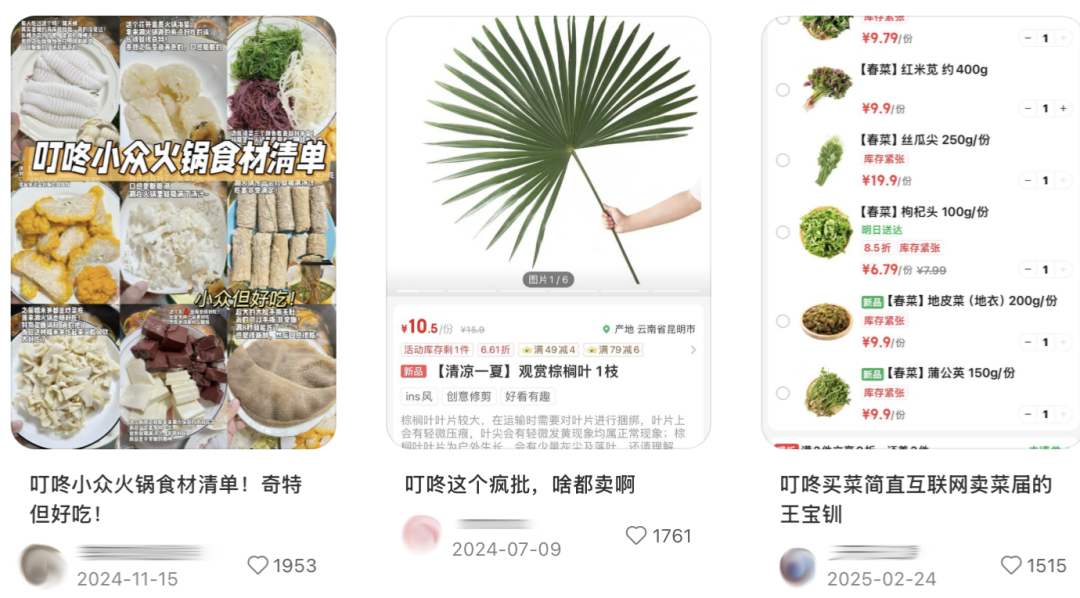 坊间曾有老吃家称叮咚买菜为“互联网卖菜界的王宝钏”,只是因为“太能挖了”。从各种野菜到天南地北的菌子,诸如地皮菜、蕨菜、海菜、金雀花等等你或许都没听过的小众菜品,叮咚买菜都能哐哐一通找到。
