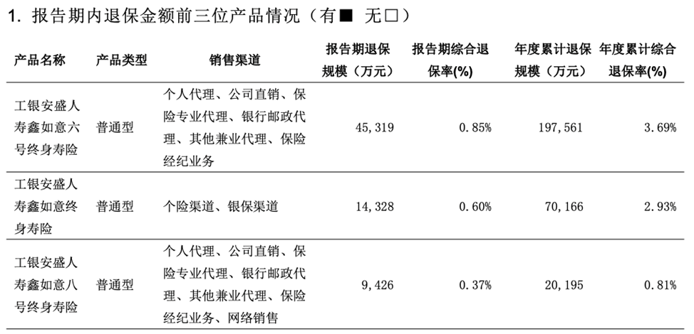 其中,一款名为“工银安盛人寿鑫如意六号终身寿险”的退保金一直以来都是最高的,报告期末达到了19.76亿元,同比增长7.96%,年度累计综合退保率也常年超过了3%,2024及2025年分别达3.54%、3.69%。