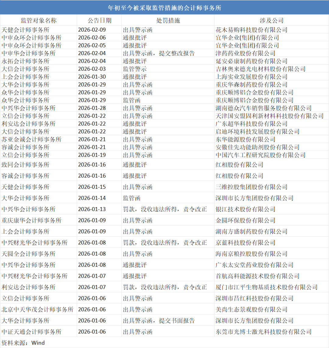 2026年开年不到一个半月,就有19家会计师事务所吃下罚单,部分机构更是多次被“点名”。