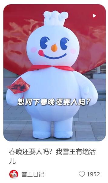 近日,蜜雪冰城在社交平台上提出了一个“春晚还要人吗”的问题,没想到,随后雪王就收到了河南卫视春晚的邀请,拿到河南春晚邀请函的蜜雪冰城迫不及待奔走相告。竟然在河南一些城市雇佣花车游城宣告上了春晚。网友戏称,开得那么慢,是想让所有人都看到啊,还有网友戏称“赚点钱全用来炫耀自己了。”不管如何,春晚还没开始,雪王已经把热度和话题打出来了,绝对算是物超所值的营销。