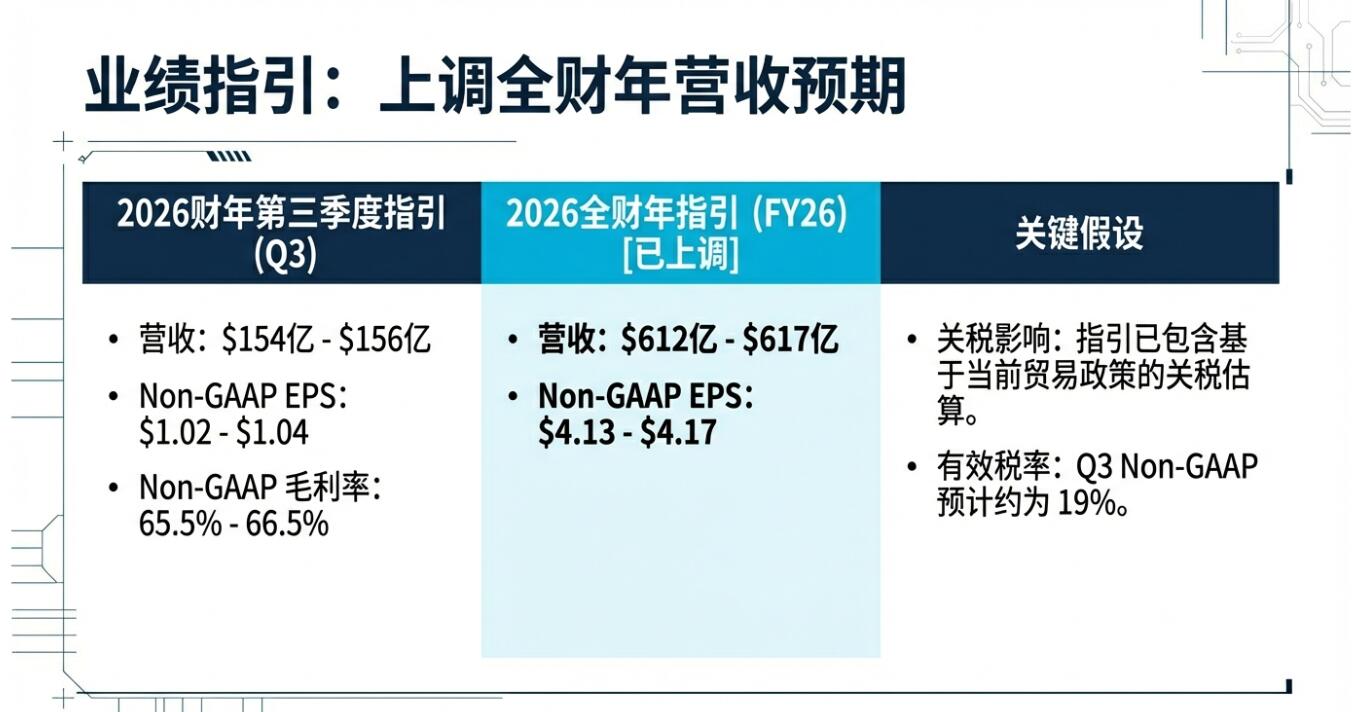 全年营收指引至少上调逾1% 本季指引高于预期