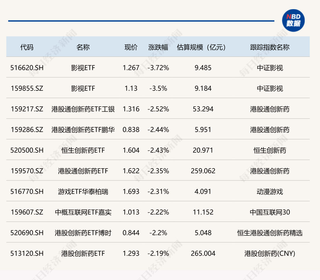 下跌方面,影视ETF跌超3%。