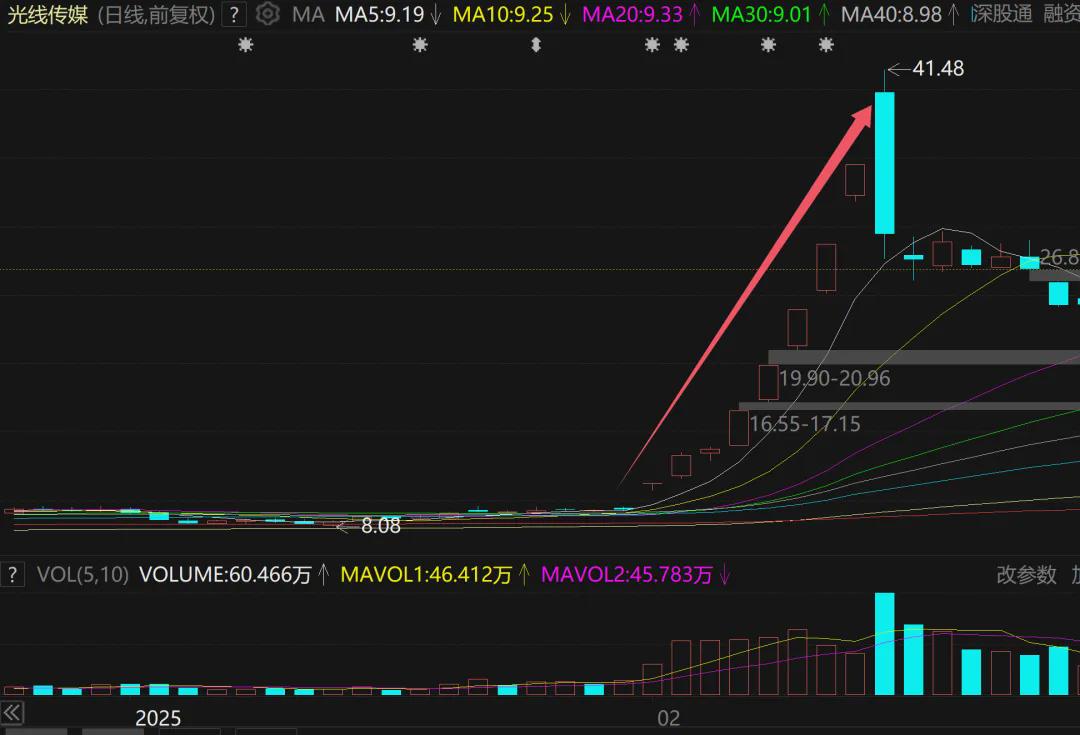 2月10日,光线传媒20cm涨停,11日大涨5%,12日大跌12%以上。