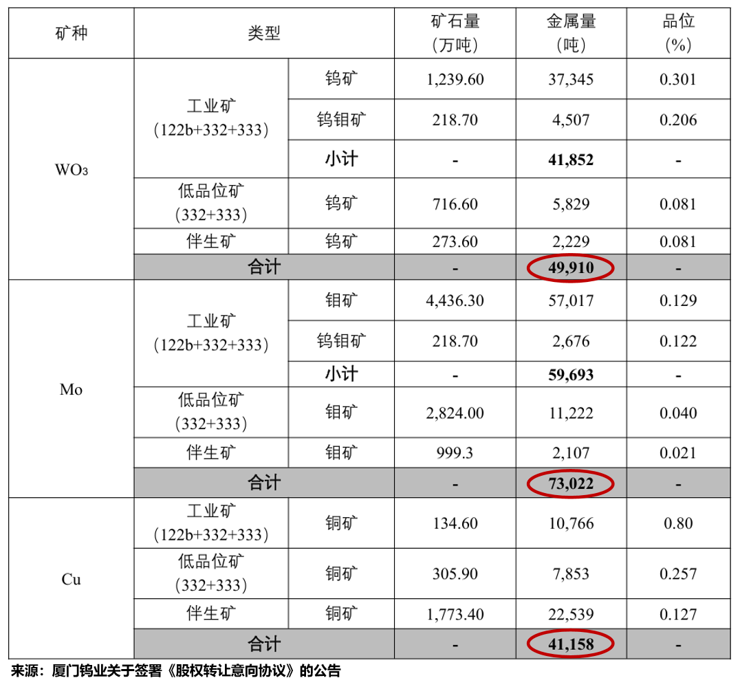 截至2025年底,昆山钨钼矿的钨精矿(WO3)金属量约5万吨,钼(Mo)金属量约7.2万吨,铜(Cu)金属量约4.1万吨。