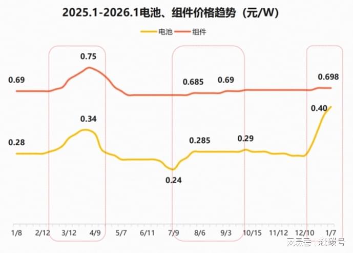 2025年,光伏电池价格持续受政策、原材辅料多轮因素驱动,全年共释放三轮涨价周期:“3-4月抢装潮拉动”、“7月国家反内卷政策加码”、“11-12月银价飙升”。前两轮电池涨幅相对温和,组件厂通过降低排产优先使用自有电池缓解成本压力。