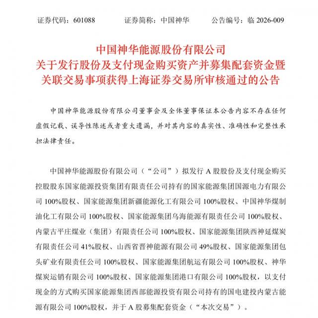 从披露方案到审核通过,从千亿体量到流程创新,中国神华此次重组既是国家能源集团内部优质资产证券化的关键一步,也是A股并购重组市场化、常态化、高效化运行的鲜活样本。